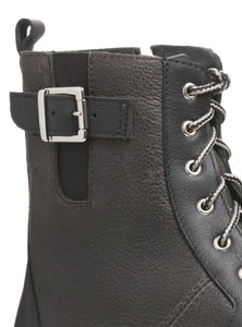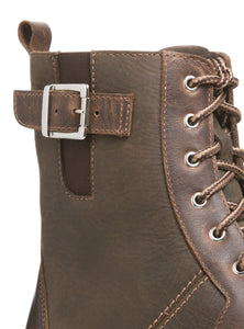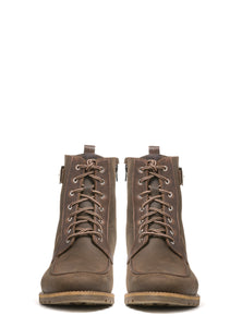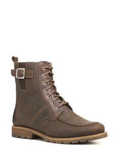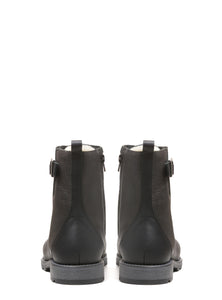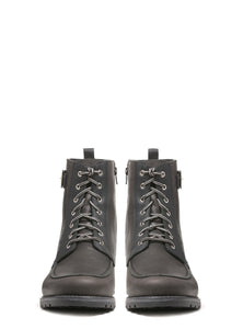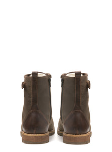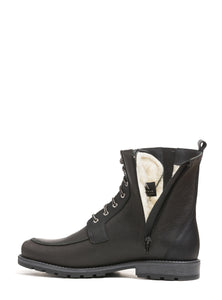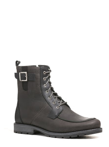 The Laurent boot channels metropolitan sophistication with an edge of rugged durability. Handcrafted in waterproof full-grain leather, it is fully lined with plush natural wool for insulation and comfort through the coldest days. A lace-up front pairs with a discreet interior zipper for effortless wear, while the adjustable buckle strap sharpens its silhouette. Set on a treaded rubber outsole, it ensures dependable grip in city and winter landscapes alike. Available in Charcoal and Chocolate Brown, the Laurent boot complements a modern wardrobe with versatile styling. Pair it with slim dark denim and a wool overcoat for a sleek city look, or with tailored cargo trousers for off-duty refinement. More than a boot, Laurent is an everyday essential that bridges performance and understated luxury.