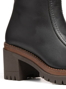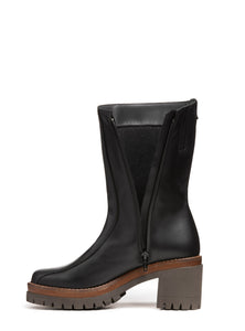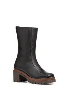 Blending bold lines with cold-weather function, the ELLIE boot makes a modern statement. Expertly crafted from waterproof full-grain leather, it’s lined with natural wool at the footbed and interior upper for targeted warmth where it matters most, while a soft microfiber lining in the shaft ensures breathability and comfort. The square toe adds architectural interest, and the block heel paired with a treaded outsole delivers both lift and winter traction. Equal parts protection and style, ELLIE is your go-to for cold-season days that call for comfort with edge.