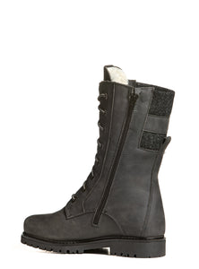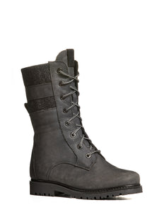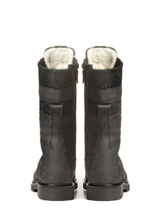 The ENYA is a mid-calf winter boot crafted from waterproof full-grain leather and finished with a genuine Harris Tweed collar. Fully lined in dense natural wool, it offers warmth without compromise. A bellows tongue keeps out snow and debris, while the 10mm wool-lined footbed and interior YKK zipper ensure comfort and ease. Set on a treaded Italian rubber sole for confident traction in the cold.