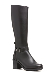 The BIANKA boot is where artisanal craft meets modern poise. Sculpted in smooth full-grain leather, it’s distinguished by a custom buckle — a sculptural accent that adds strength and refinement to its sleek silhouette. Inside, a natural wool lining insulates the footbed and upper, while a soft microfiber shaft enhances breathability and all-day comfort. A discreet zipper ensures ease of wear, and the sturdy sole provides dependable traction with a polished finish.