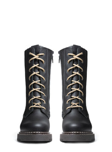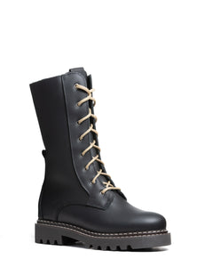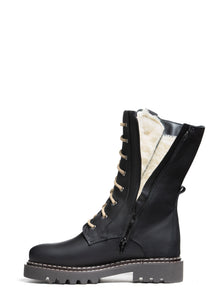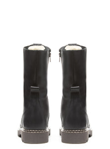 The Karina boot is a study in strength and elegance. Crafted from buffed full-grain leather and fully lined in natural wool, it offers enveloping warmth with every step. A full interior zipper allows for effortless entry, while the treaded outsole and contrast double-stitch welt provide sure footing in snow-covered streets. Its mid-calf silhouette delivers just the right balance of coverage and lightness. Designed to elevate winter routines—whether in the city or beyond.