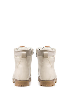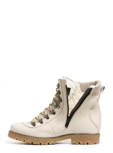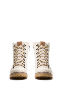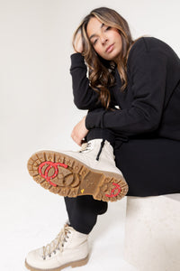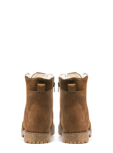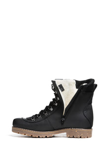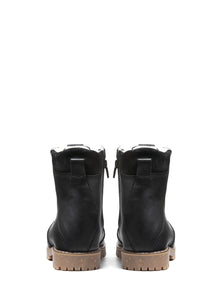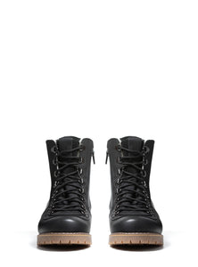 The NORTH boot balances rugged function with refined form, redefining winter style through a clean, minimalist lens. Crafted from waterproof full-grain leather and calfskin suede, and fully lined in natural wool, it delivers breathable warmth without added bulk. A padded suede collar softens the silhouette, while the laces and gunmetal hardware add a touch of alpine sophistication. Set on a durable rubber outsole with the OC Grip system, it ensures steady footing through snow, ice, and slush. Whether layered with tailored essentials or chunky winter knits, NORTH moves seamlessly from city streets to mountain paths—elevating every step with grounded elegance.