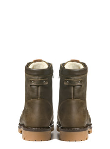 The VERSANT boot blends mountain spirit with everyday functionality. Built from waterproof full-grain leather and fully lined in natural wool, it delivers breathable insulation without compromising on style. The moc-toe design and interior zipper combine classic detailing with easy on-and-off convenience. Set on a robust lugged sole, it offers confident traction from city sidewalks to country trails. Whether paired with denim, wool trousers or a field jacket, VERSANT moves with purpose—built for winter, styled for life.