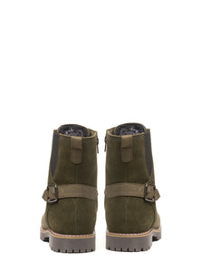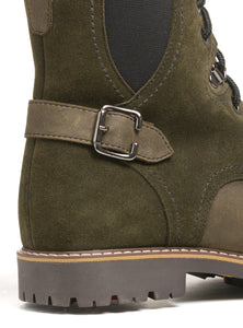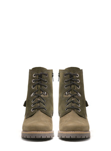 Merging alpine strength with artisanal grace, the SVEZIA boot channels a bold, grounded femininity. Its sculptural silhouette pairs rugged green suede with contrasting leather panels—each detail crafted to evoke resilience and refinement. Fully lined in natural wool for breathable warmth, it’s built for the rhythm of winter. The lace-up front and interior zipper offer practical ease, while the durable treaded outsole features retractable OC Grip spikes for confident traction in snow and ice.