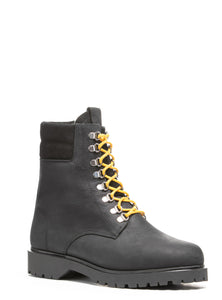 A bold evolution of our classic Lukas silhouette, the Lukas.3 reimagines winter utility with a refined alpine spirit. Crafted from waterproof full-grain leather and lined in dense natural wool, it delivers breathable warmth and protection in colder climates. The padded suede collar softens the silhouette, while gunmetal hardware and waxed yellow laces introduce a distinctive edge. Set on a treaded sole built for snow and slush, it’s made for the rhythm of winter—whether in the city or off the beaten path.