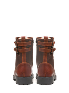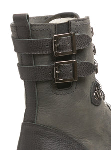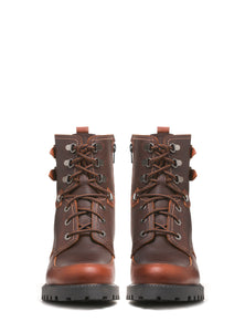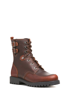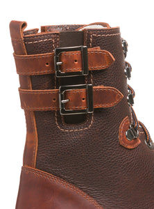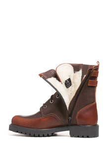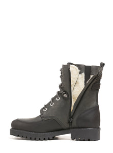 Military-inspired lacing is paired with adjustable buckles for a tailored fit and bold visual edge. Lined entirely in natural wool, MONTANA delivers breathable warmth without compromise. The rugged lug sole offers confident grip on winter terrain, while a side zipper ensures effortless on-and-off wear.