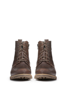 Part of our Urban Collection, the RENZO Wool-Lined Edition delivers dependable warmth and city-ready style. Crafted from distressed full-grain waterproof leather and fully lined in dense natural wool, it offers reliable insulation without sacrificing a sleek silhouette. The rounded moc toe detail adds subtle texture, while the lace-up front and interior zipper provide a secure, adjustable fit. A treaded rubber outsole ensures solid traction on winter streets and snowy sidewalks.