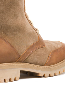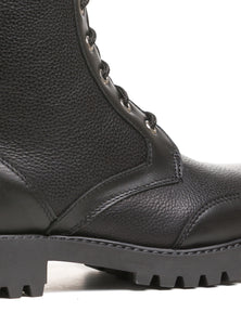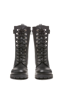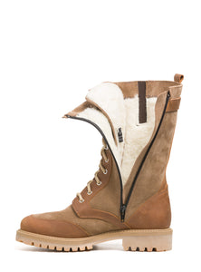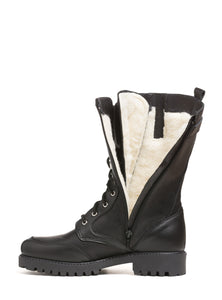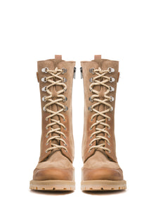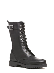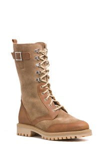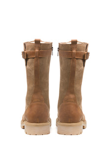 ODESSA is more than a winter boot—she’s a bold expression of form and intention. Drawing inspiration from utilitarian heritage and reimagined through a refined lens, this new silhouette speaks to quiet confidence and elevated function. Crafted in richly textured leather or suede and fully lined in natural wool, ODESSA wraps the foot and leg in warmth while making a sculptural statement. Adjustable side buckles, deep front lacing, and a distinctive notched tongue echo classic combat design, while a hidden gusset behind the upper buckle adds a soft element of adaptability. A rugged outsole grounds the look with substance and grip.