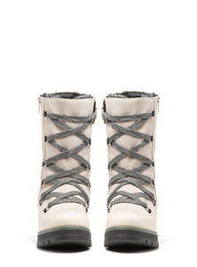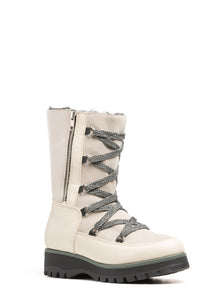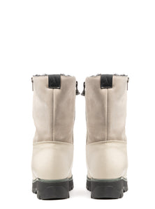 The MISHA blends mountain-ready function with refined design. Crafted from waterproof full-grain leather and suede, this mid-calf winter boot is fully lined in natural sheepskin for breathable, insulating warmth. Dual zippers offer easy on-and-off, while the treaded Italian outsole provides reliable grip in wintry conditions. Finished in an elegant cream colourway, MISHA moves effortlessly from city streets to alpine escapes.