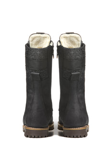 The ENYA boot is a study in enduring craftsmanship and timeless winter style. Handcrafted in waterproof full-grain leather, it comes in two refined editions: black with authentic Harris Tweed® panels, woven in Scotland for heritage texture, or caramel with a smooth calfskin suede collar for a tonal, modern look.