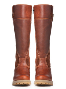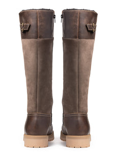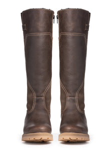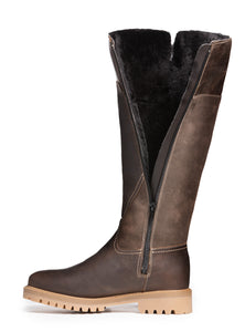Tall, sculptural, and undeniably refined—the Aubrey is built for both deep snow and downtown streets. Crafted from distressed, waterproof full-grain leather and calfskin suede meet a full sheepskin lining for warmth without compromise. Finished with Italian hardware and a cold-weather outsole, it’s winter, perfected.
