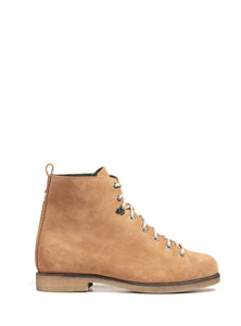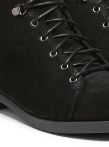 A refined mid-top sneaker boot designed for effortless transitions—between city streets, weekend escapes, and everything in between. Handcrafted from waterproof suede and fully lined in natural leather, Gia offers breathable comfort in a silhouette that feels both structured and soft. Its 10mm leather footbed, engineered with an integrated membrane and built-in support, ensures grounded ease from morning to night. Set on a lightweight Italian rubber outsole, it delivers discreet traction and fluid motion. Finished with waxed laces and subtle heel stitching, Gia is confident, understated, and made to move with you.