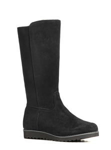 Crafted from rich suede with a naturally distressed finish, the OLIVIA boot is winter luxury made effortless. Its plush sheepskin lining envelopes the foot and leg in natural warmth, offering comfort that feels as indulgent as it looks. The tall, unembellished shaft elongates the silhouette, while a discreet interior zipper ensures ease without disrupting the clean lines.